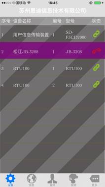 在图2.2.1中显示了此用户相关的联网单位所用设备的当前信息和状态,如果显示为如图2.2.2所示紫色背景行,表示设备离线。