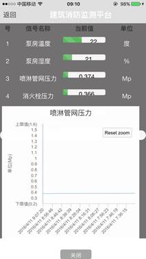 进入水系统、电气火灾或者气体灭火中的某个页面后,点击具体的某条报警记录后,将显示对应接口的趋势图,如图2.3.4所示:
