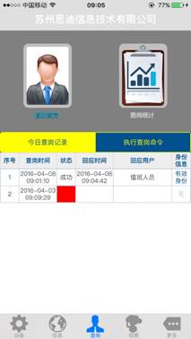 点击“查岗”按钮,将对指定单位进行查岗操作,软件同时开始计时,如果现场用户应答成功,则停止计时,需要注意的是,计时的时候,用户不能退出应用,否则会导致时间不准确。