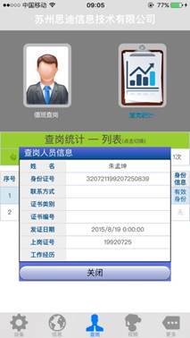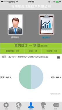 点击”查岗统计-饼图”将切换到列表显示方式,如图2.4.4所示。如果列表中”身份信息“为有效身份或者无效身份,点击可查看应答者的身份信息。